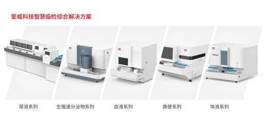 图:爱威智慧临检综合解决方案 - 开创全自动镜检先河:2001年,在全球率先立项,开展尿沉渣镜检应用研究;2002年,推出全球第一款尿液形态学自动镜检仪器“AVE-761尿沉渣智能分析仪”;同年,经湖南省科技厅组织的成果鉴定显示,爱威计算机图像自动识别技术应用,填补了国内空白,处国际领先地位。自动化阶段,仪器帮助检验人员从繁琐的流程、耗时的操作中解放出来,替代大量重复的劳动。经过20多年努力,爱威科技已实现了尿液、粪便、生殖道分泌物、血液等各种标本检验的全面自动化,为全实验室自动化提供了良好的建设基础。 - 全流程智能化技术迭代:智能化阶段,爱威仪器已实现标本智能前处理、智能推片染色、智能检测和分析、多模块智能连接等功能,并输出多方法检测的综合报告。如爱威研发的AVE-2100血细胞形态学自动化分析流水线,集成“一次性复合推片带制片”“直列浸润式染色”“21层多景深采图”“AI深度卷积神经网络识别”等核心技术,实现全流程智能化、标准化。2021年爱威“医学显微镜自动检验关键技术及应用”项目,经国家科技成果鉴定处“国际领先”水平。