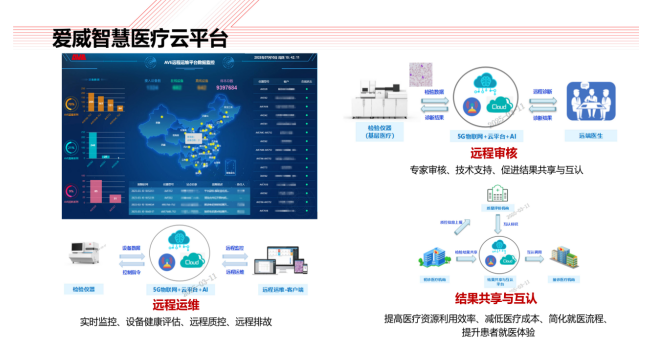 图:爱威智慧医疗云平台 - 构建智慧临检新生态:随着全实验室自动化进程推进,有助于生成海量与疾病诊断关联的数据库;人工智能的快速发展和智慧管理云平台的建设,则有助于将数据生成诊断意见、临床决策和构建疾病风险预测模型,推动临床诊断与预测智慧化。通过爱威仪器直接确认的细菌类、真菌类、寄生虫类的病原学诊断在报告中可直接提示诊断意见,并给出下一步建议。 爱威科技现所有仪器,都可连接爱威智慧医疗云平台,实现远程审核、远程运维、结果共享和互认,正一步步脚踏实地推进常规检测向着自动化、标准化、智能化、智慧化的方向前进。 爱威科技向内追求技术破壁,填补行业空白,向外牵头制定行业标准,引领行业快速发展。目前,爱威科技母子公司共累计获得有效专利证书300多个,发明专利100多个。应用层面,爱威科技年检测标本量超1亿人次,由此构建的千万级临床标本显微图像数据库,更成为行业AI模型训练的“数据金矿”。2005年,爱威科技牵头参与“中国健康人群尿液有形成分正常参考值调查”,这是世界医学史上首次由中国人建立的正常参考值。至今,爱威作为主要起草单位参与制定国标、行标、地标和团标等各级标准20多项,推动智慧临检向着“标准化、均质化、智慧化”方向发展。 场景赋能:技术下沉破解基层IVD发展痛点 随着“健康中国2030”战略推进,基层医疗成为IVD行业新增长极,但仍面临检验设备不完备、专业人员缺乏、检验均质化难等诸多问题,尤其是在形态学检验领域。爱威科技以创新形态学自动镜检技术为核心,打造适配基层的“硬件+软件+服务”一体化解决方案,推动优质检验资源下沉: 图:爱威基层医疗综合解决方案 - 多功能设备助力“降本增效”:形态学检验是临床实验室最基本、最直接、最实用且应用最广的临床检验诊断方法。然而,形态学检验技能需要通过较长时期的专业培训才能较好掌握,基层(包括诊所)通常形态学镜检设备不完备、专业人员匮乏、经验不够、培训不足、检验结果难以均质化,漏诊、误诊案例时有报道。针对基层标本分散、量小、来源杂、收费低等情况,爱威科技研发并生产了集成化、多功能、自动化、智能化的AVE-66系列多功能镜检仪。仪器可以对尿液、粪便、白带、体液等标本有形成分进行实景采图、智能分析、分级报告,极大的提高了基层医疗单位形态学检验硬实力。另外,针对村卫生室和诊所等小型医疗机构,爱威推出AVE-63系列多功能化学免疫分析仪,小巧迷你,覆盖尿液、白带、粪便、精液等多类标本的30多个检测项目,涉及20多个病种和4项肿瘤早筛。 - 远程智慧平台筑梦“医共体”:仪器搭建“爱威智慧医疗云平台”,对于疑难细胞、疑难病例可以实时传输至上级签约医疗单位,由上级医疗单位辅助对疑难细胞、疑难病例进行识别与诊断,解决“基层不会检、上级难复核”问题,有利于落实上级医疗单位对下级医疗单位业务指导和帮扶,全面实现资源共享下沉、推动医共体建设。 - 健康快检人人成为“行动者”:爱威还推出iPOCT产品,可满足床旁、急诊、基层、出诊、家庭等多场景即时检测需求,产品包括糖尿病、胃肠、腹泻、泌尿、孕育、女性健康、肿瘤早筛、健康体测八大系列,全面满足日常体查、疾病筛查、慢病管理三大需求,消费者在各电商平台爱威旗舰店都能买到这些产品,致力于让自体查像刷牙一样简单,让每个人都能成为健康管理的“行动者”。 全球拓展:中国IVD技术走向世界 全球IVD市场规模预计2025年达936亿美元,市场空间巨大。爱威科技从技术突破到场景赋能,从技术国际领先到全球业务拓展,爱威很早就开始布局国际市场了,并以“技术输出+本地化适配”打破国际竞争壁垒: - 技术输出适配全球需求:爱威科技在很多国家取得了相关发明专利,包括美国、土耳其、俄罗斯、日本、欧洲、巴西、韩国、印度等国家和地区,同时爱威也在积极参加全球学术会议和产品博览会。目前,爱威已经与来自欧洲、美洲、亚洲及非洲等60多个国家和地区的客户建立了良好的合作关系。 - 标准输出争取国际话语权:出海多年,爱威AVE-77系列尿全项自动分析仪、AVE-73系列尿液分析仪(小型尿机)、AVE-56系列全自动粪便分析仪在国际上很受欢迎,另外AVE-57系列粪便有形成分分析仪也备受关注。爱威将主导制定的行业标准转化为国际合作基础,与巴西、印度等国医疗机构共建“镜检自动化示范实验室”,推动中国IVD技术标准走向世界,在AI镜检领域争取国际话语权。 - 生态化服务延伸:在海外市场同步推出“设备运维+技术培训+数据服务”的全周期服务,配套远程运维平台,实现24小时无时差在线响应,提升国际客户粘性。 另外,爱威科技旗下有多家子公司,有一个就在美国——美国爱威科技有限公司。目前,爱威也逐步在海外设立营销分支机构,大幅提升海外市场营销能力及售后服务水平。预计在今年下半年至年底还将完成几项重要认证,此举将带来海外市场的显著增长。 目前,爱威虽在海外市场的占有率还不大,但凭借国际领先的硬核技术,未来成长空间和潜力巨大。正如行业分析师所言:“爱威科技的发展路径,印证了技术创新是IVD企业突破竞争壁垒的核心动能,也为中国IVD行业走向高端化、全球化提供了关键启示。” |